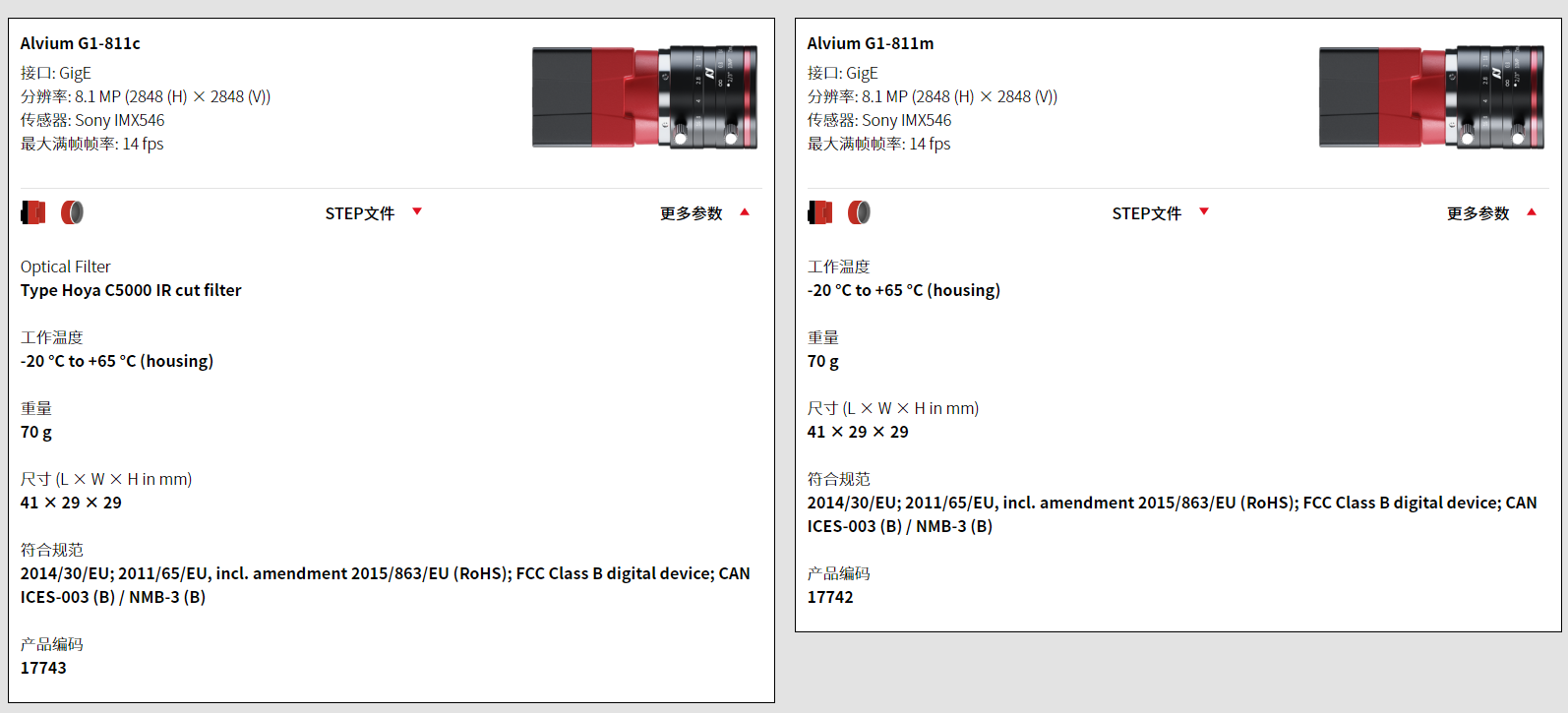 Alvium G1-811 搭載 Sony IMX546 傳感器,在 8.1 MP 分辨率下速度可達(dá) 14.0 幀/秒。