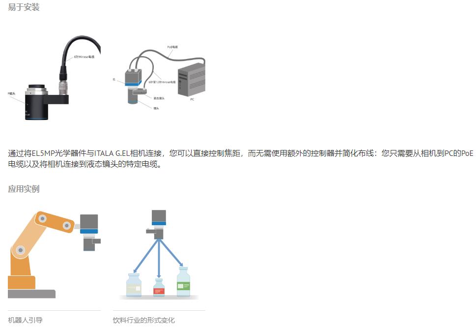 這類光學(xué)器件是高速檢測和不同工作距離的理想選擇,例如,食品和飲料行業(yè)以及制藥和化妝品行業(yè)。此外,EL5MP光學(xué)元件是引導(dǎo)機械臂的理想選擇,用于拾取和放置,垃圾箱拾取等應(yīng)用。