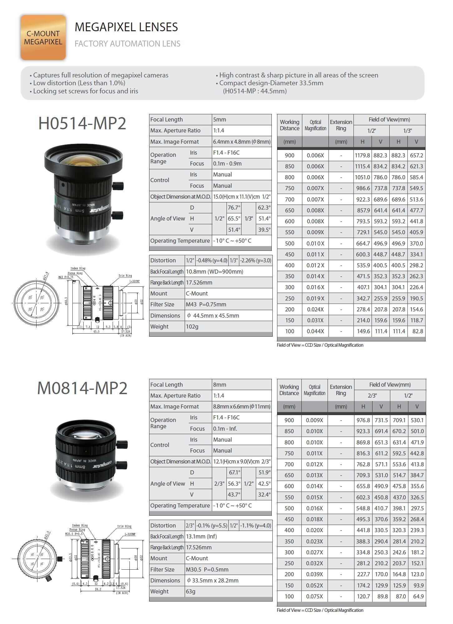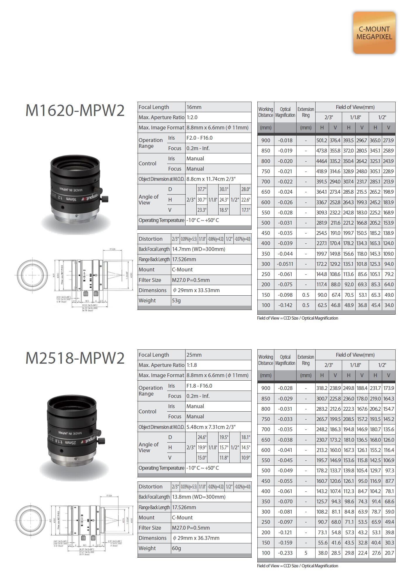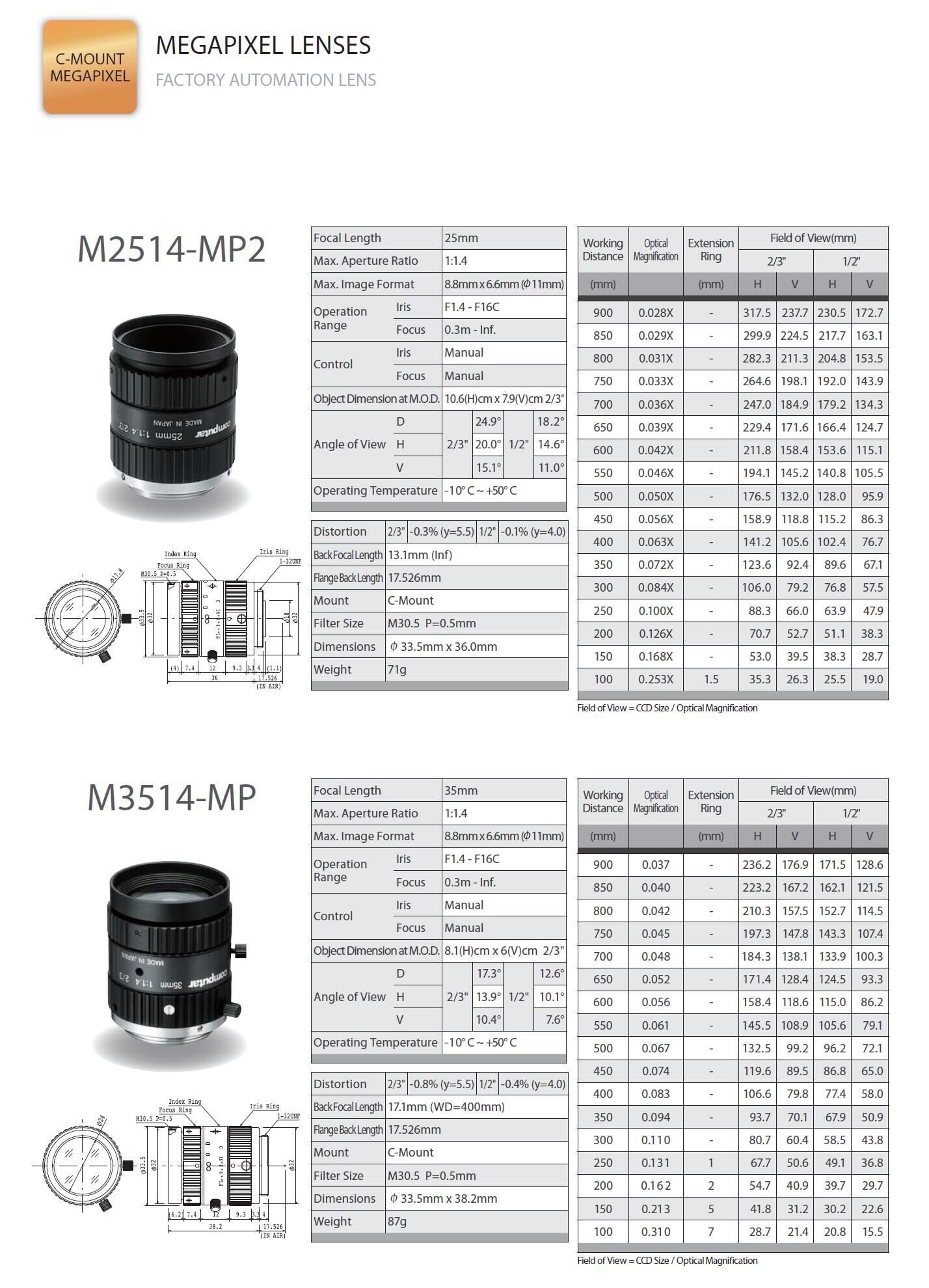 Computar FA鏡頭為工業(yè)應(yīng)用攝像機(jī)而設(shè)計(jì),為機(jī)器視覺(jué)提供百萬(wàn)像素的圖像。應(yīng)用于自動(dòng)化監(jiān)控、自動(dòng)化導(dǎo)航、定
