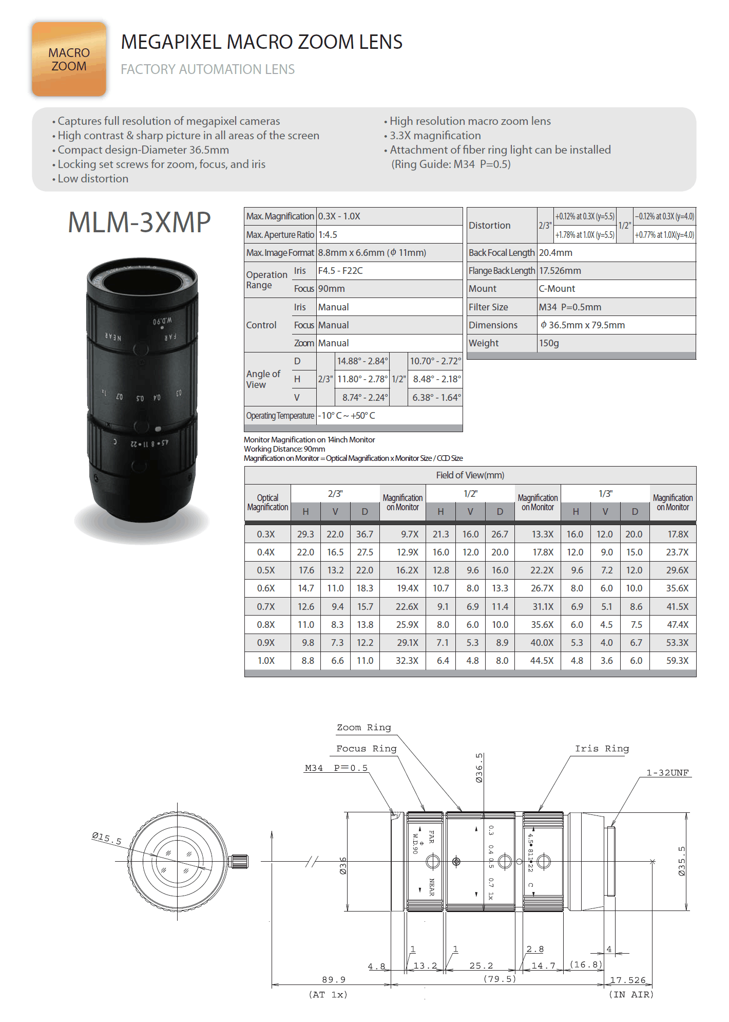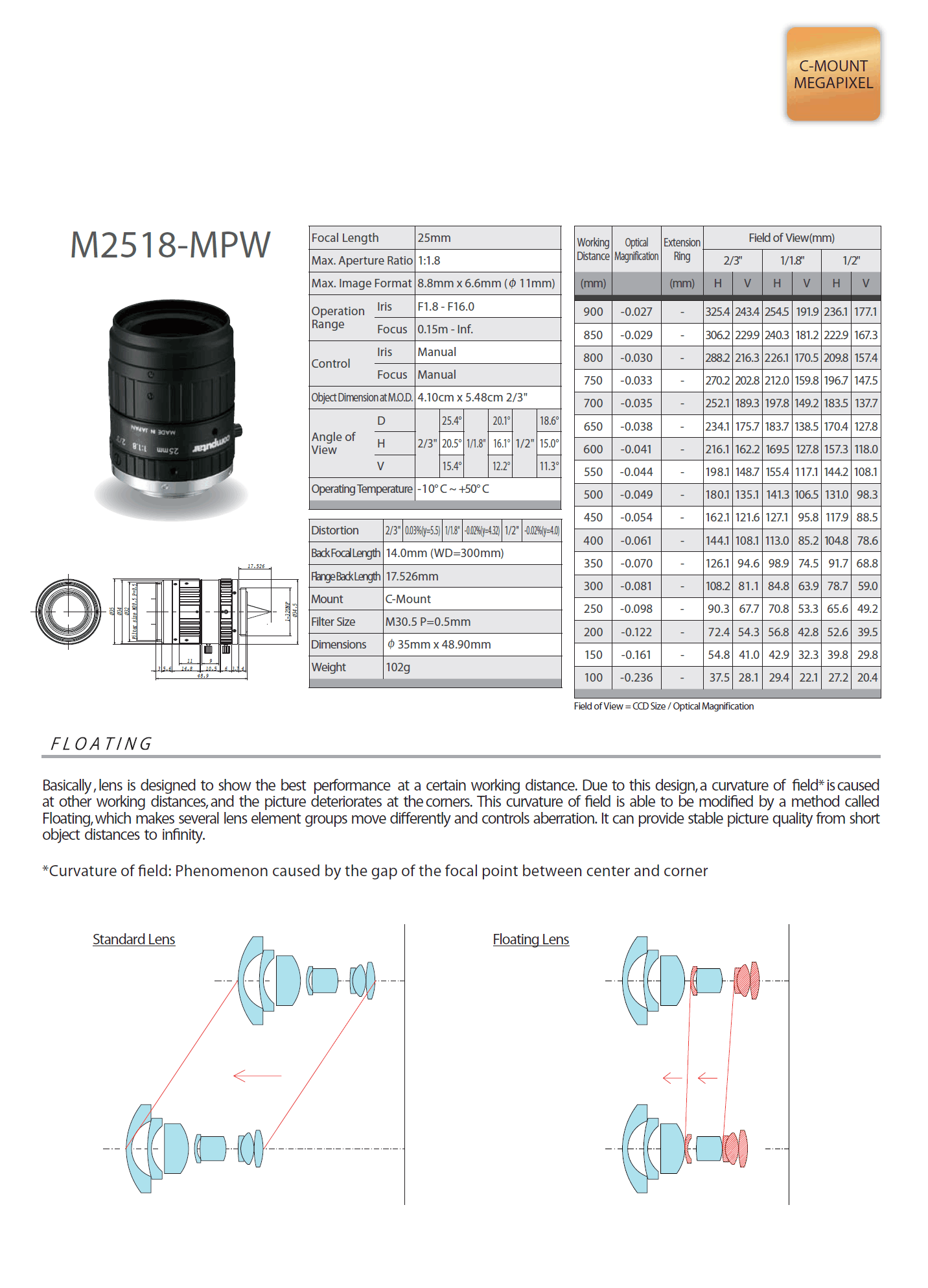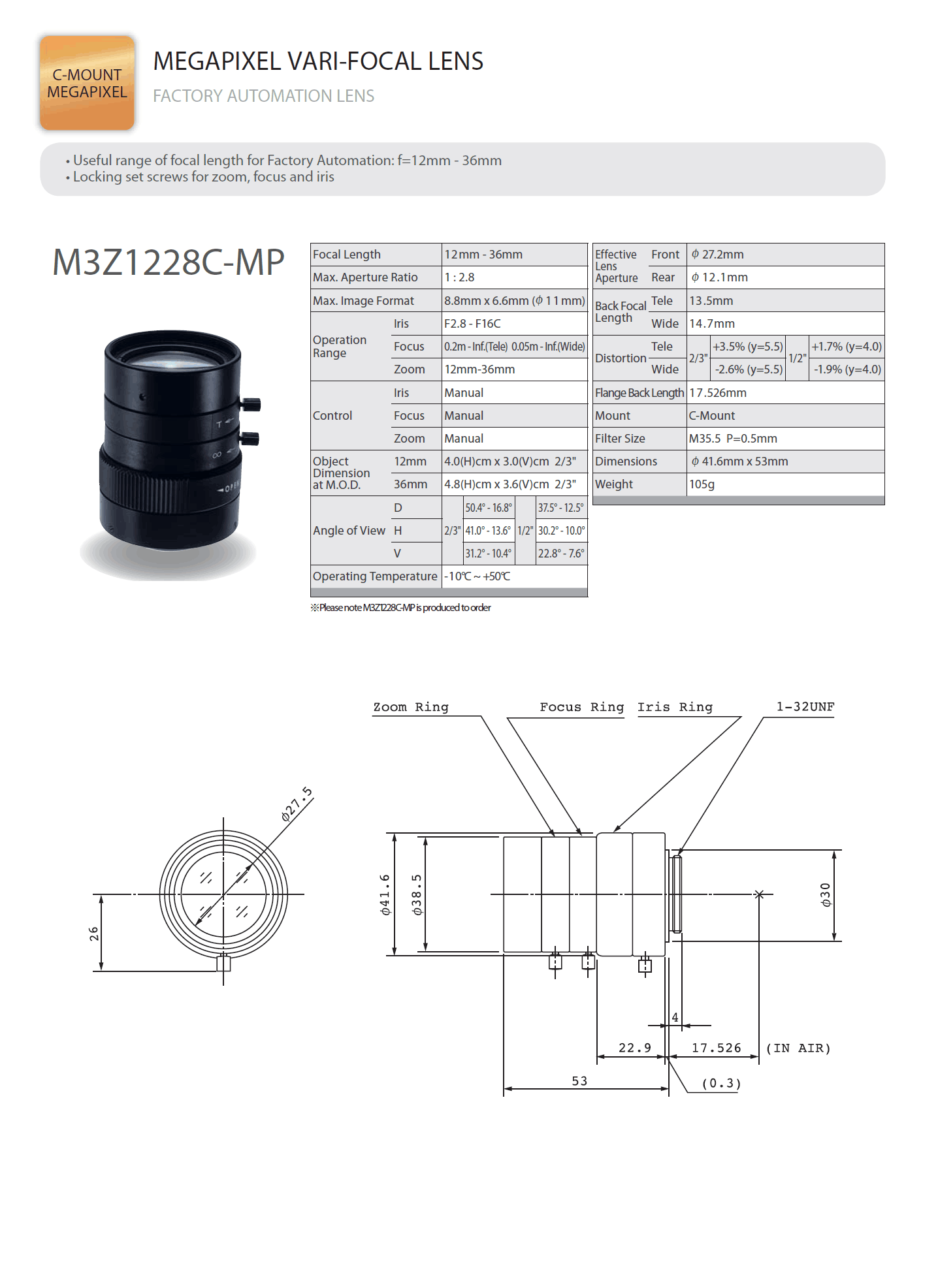 Computar FA鏡頭為工業(yè)應(yīng)用攝像機(jī)而設(shè)計(jì),為機(jī)器視覺(jué)提供百萬(wàn)像素的圖像。應(yīng)用于自動(dòng)化監(jiān)控、自動(dòng)化導(dǎo)航、定
