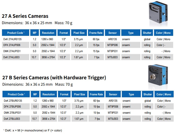 作為37系列相機(jī)的前身,此款 USB 3.0 系列配備了多款 Onsemi 傳感器,分辨率范圍自1.2至10.7 MP。
